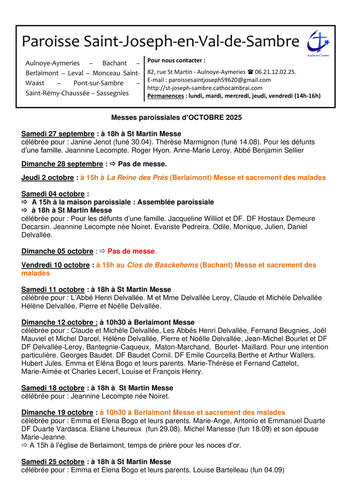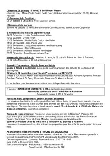 Feuille paroissiale - octobre 2025